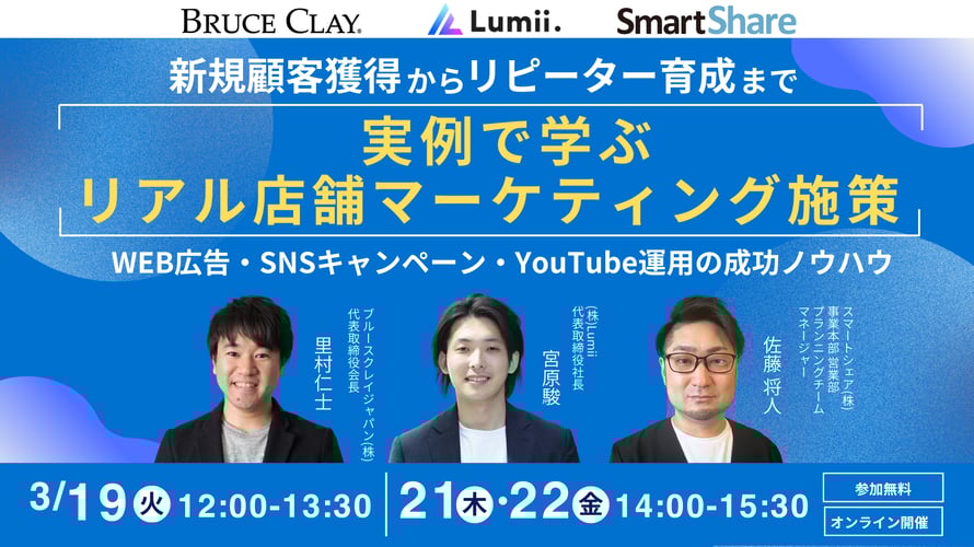 新規顧客の獲得から既存顧客のリピーター化まで、具体的な施策と成功事例を通じて実践的なノウハウが学べるセミナーとなりますので、ぜひご視聴ください。