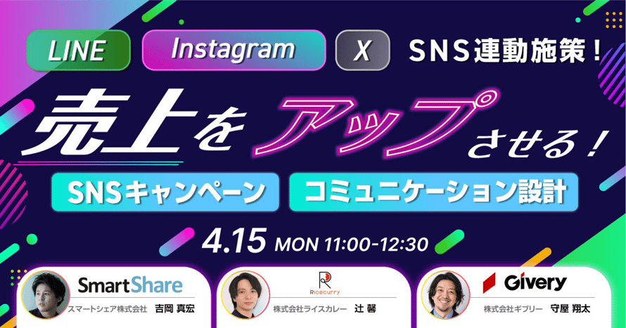 そこで今回は、SNSキャンペーン施策を支援するスマートシェア、LINE公式アカウントの運用を支援するギブリー、Instagram・Xの運用を支援するライスカレーの3社より、「複数チャネルを連動したキャンペーン施策」と「顧客エンゲージメントを高める、各SNSの特性に合わせたコミュニケーションのポイント」についてお伝えします。