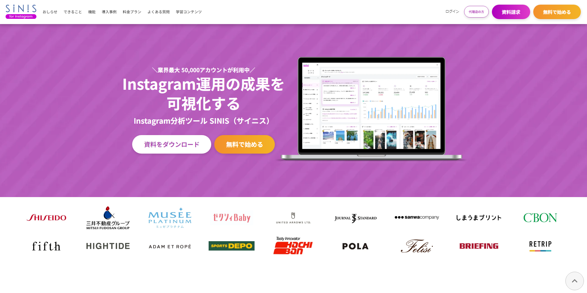 SINSは、業界最大5,000アカウントが利用する、Instagram運用の成果を可視化する分析ツールです。