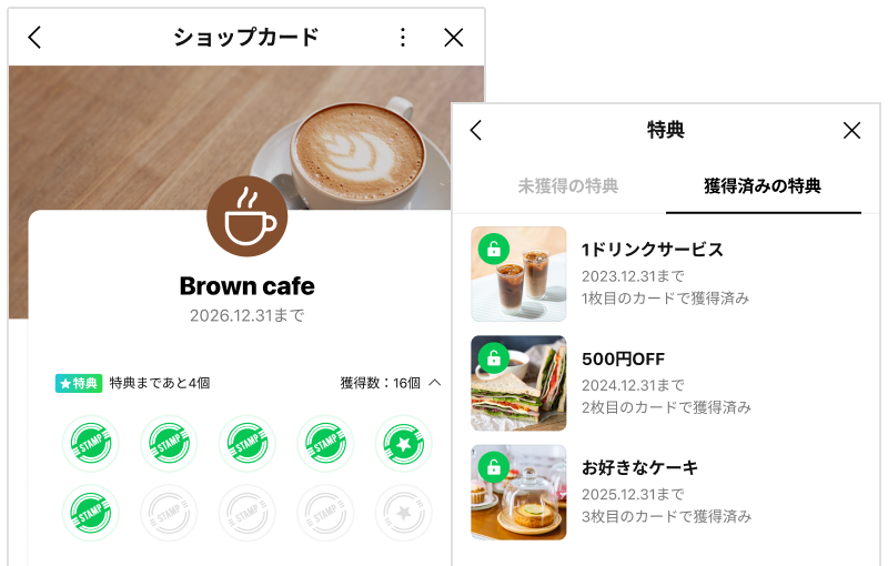 ショップカードは、LINE上でポイントを貯めたり特典を提供したりできるデジタル会員証機能です。