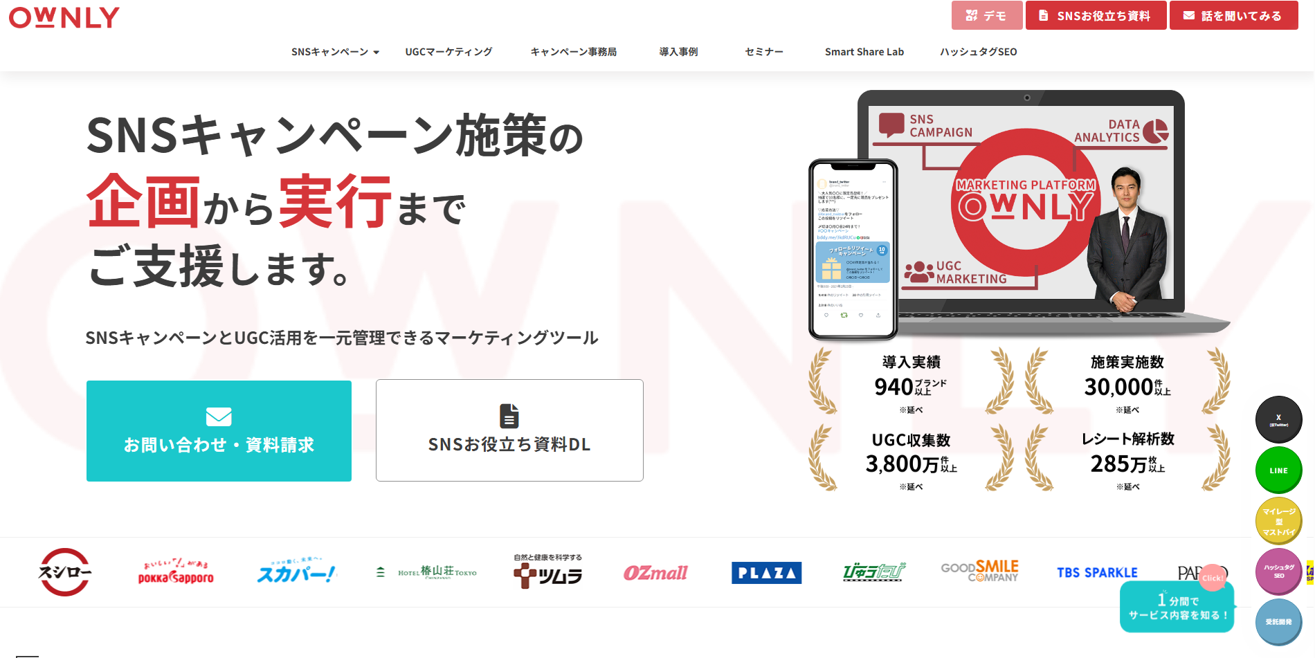 LINEキャンペーンを実施するなら、SNSキャンペーンツール「OWNLY」がおすすめです。LINE以外のSNSも無制限で活用していただけるので、SNS上でキャンペーン施策を検討している方はぜひご活用ください。