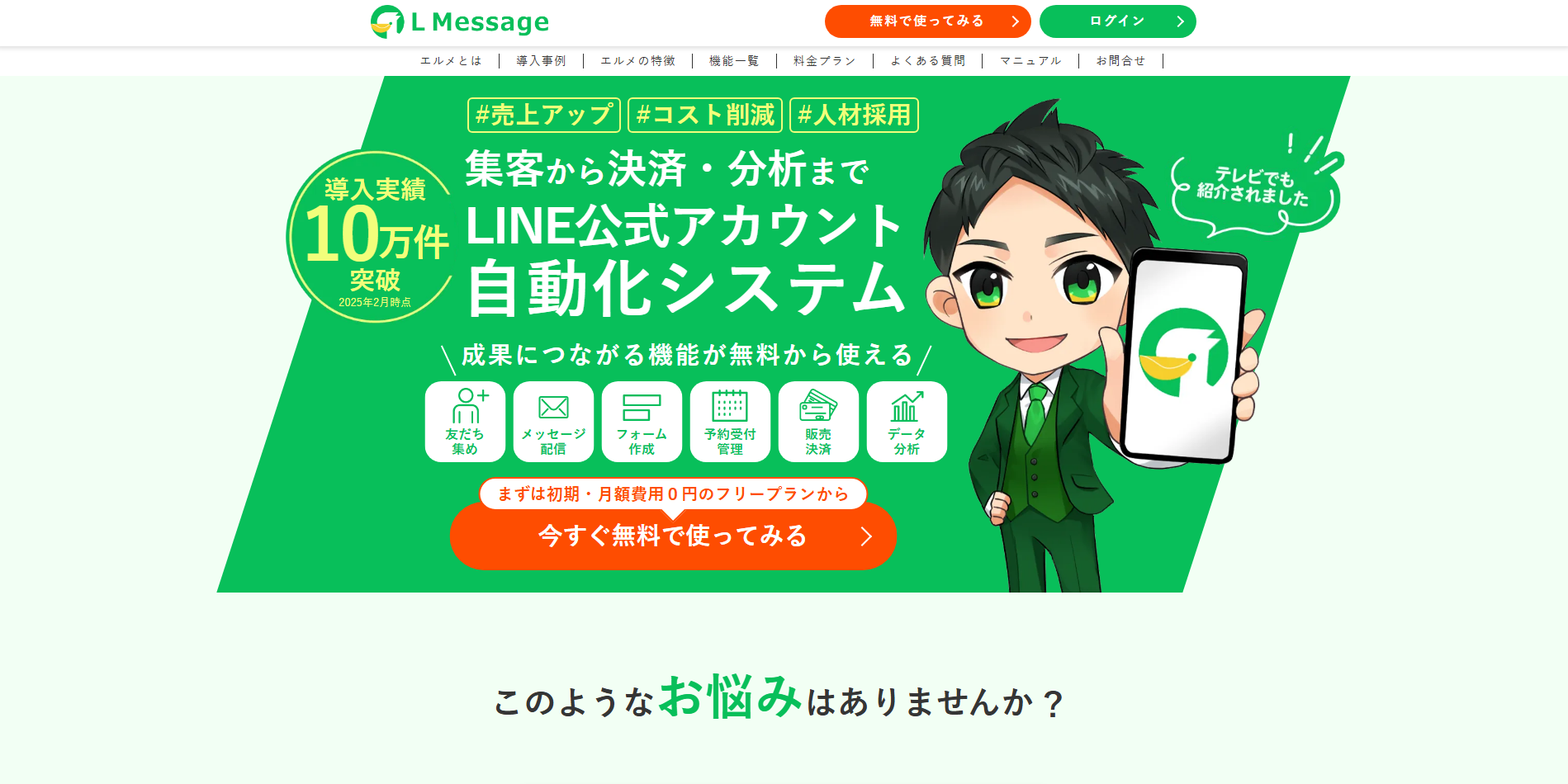 L Messageは、LINE公式アカウントの機能を拡張し、集客から決済、分析までを自動化できるオールインワン型のマーケティングツールです。