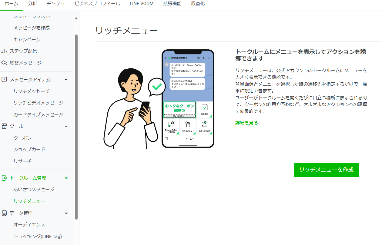 LINEのリッチメニューは、画像を準備して管理画面から設定するだけで簡単に作成できます。難しい操作は不要で、誰でも数分で設定可能です。