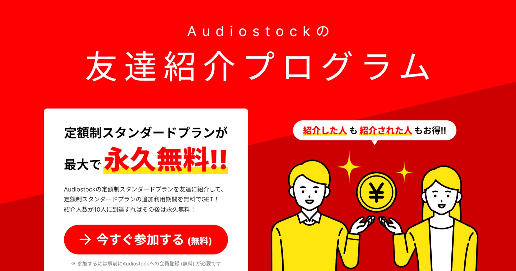 出典:BGM・効果音の使い放題プランが、最大で永久無料に!Audiostock「友達紹介プログラム」開始